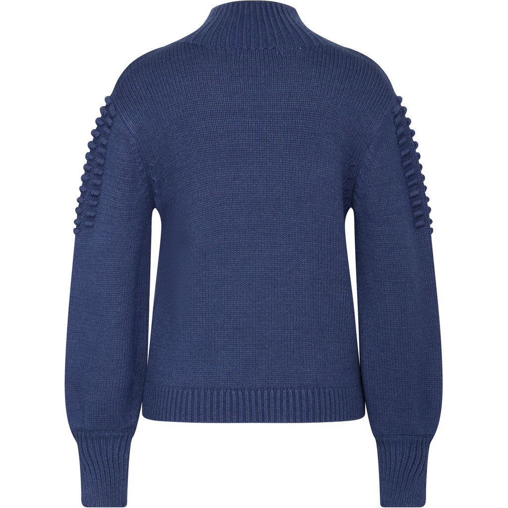 Cozy meets chic in this dark blue textured sweater, designed with a beautifully dimensional knit across the shoulders and sleeves. The structured mock neck and refined ribbed trims give it a polished finish, while the soft yarn offers comfort and warmth.