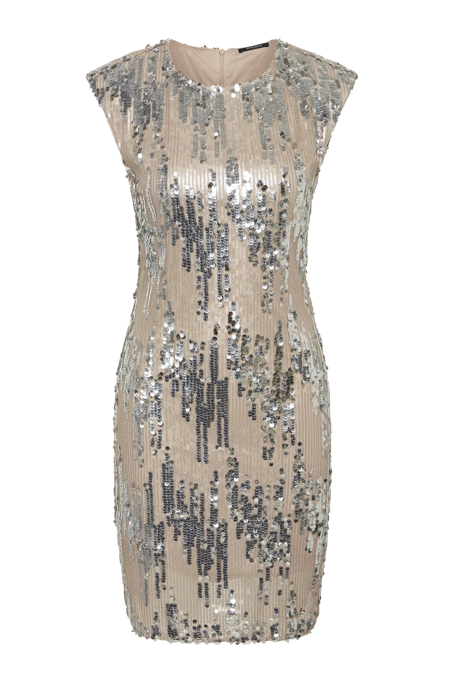 Elegant and splendid figure-hugging short dress. The dress has a long zipper down the back and a slim fit.